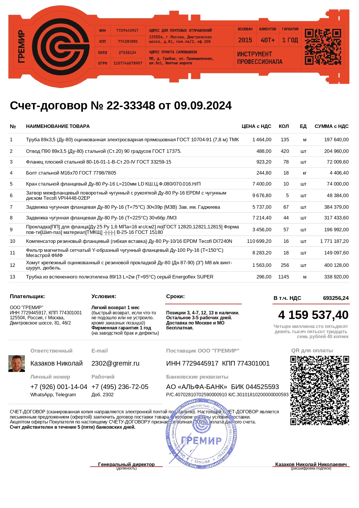 - Наименование организации: ООО «ГРЕМИР»