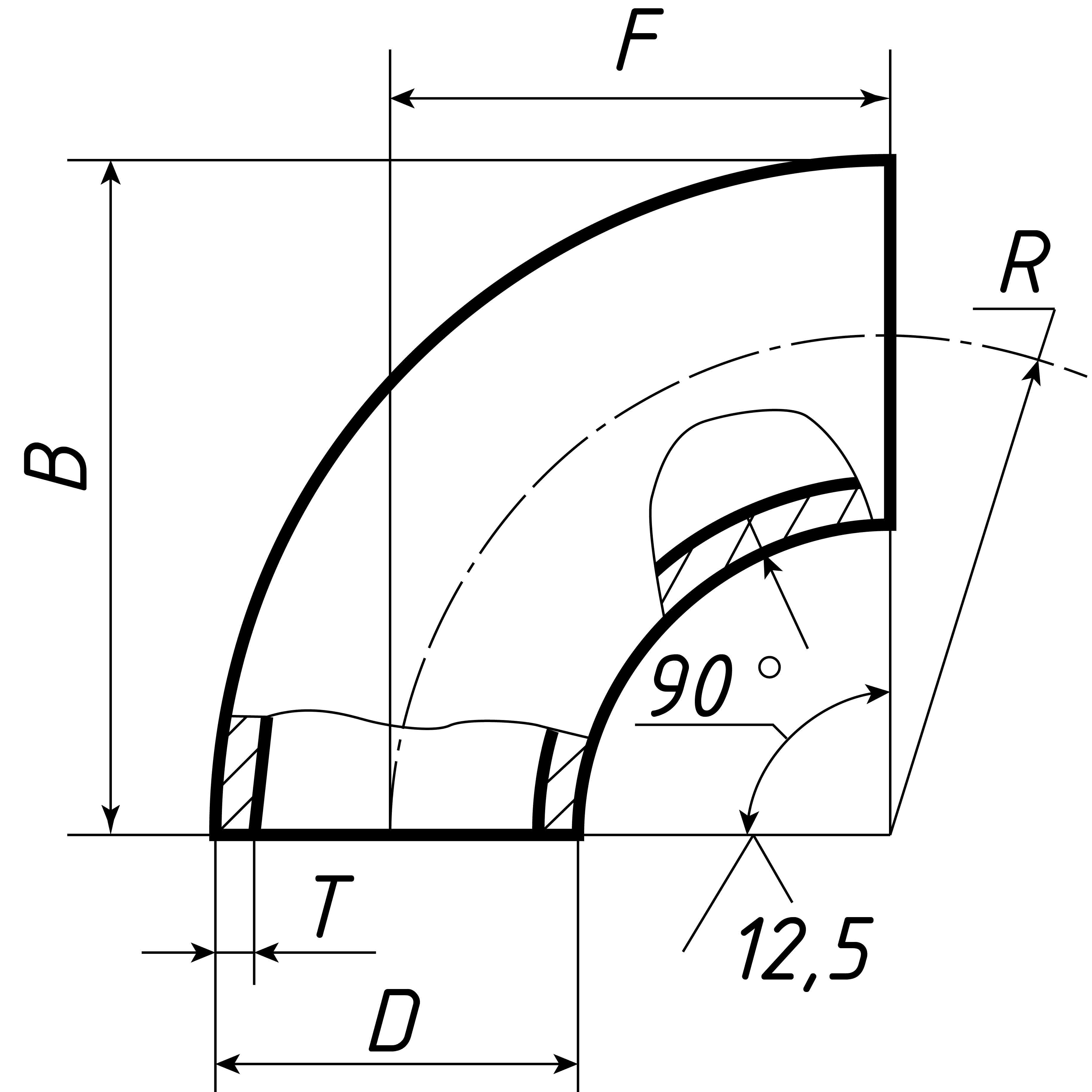 | DN, мм | D, мм | Т, мм | F, мм | R, мм | B, мм | Масса, кг |