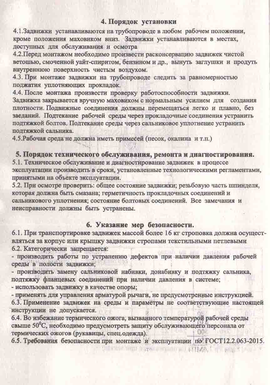 - Применение задвижек на среды и параметры не соответствующие настоящей инструкции не допускается.