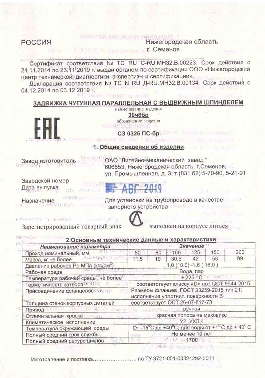 | Завод изготовитель | АО "Литейно-механический завод" 606653, Нижегородская Область, г. Семенов, ул. Промышленная, д. 3 |